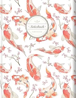 Punktraster Notizbuch (©Star, A4, 156 Seiten, Softcover) || Dickes Notizbuch mit Register + Robuster Einband || Bullet Journal, Handlettering, Skizzenbuch, Zeichenbuch, Tagebuch, "Koi Karpfen"