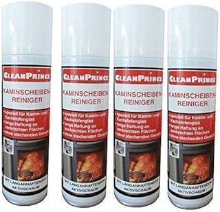4 x 300 ml CleanPrince Kaminscheibenreiniger Kamin Reiniger Ofen Glas Ruß Kaminreiniger Kaminscheibenreiniger Kaminofenglas Ofenglas Kachenofenglas Metalle Kunststoffe Verrußungen Rauchharz Fette Öle sonstige Verbrennungsrückstände Aerosol (Sie erhalten 4 Stück à 300 ml im Set.)