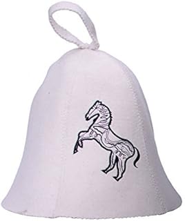 GMMH Filzkappe Saunahut Hut Kappe weiß mit Stikerei Pferd Design 5 Saunamütze für Sauna Filzhut 5177-1115