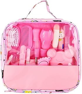 Atyhao Baby Pflege Set, 13-teiliges Baby Pflege Reinigung Set mit Nagelschere Nagelfeile Zahnbürste Ohrstöpsel Löffelkamm zum Stillen von Babyheide und Pflege(Rosa)