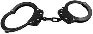 KOSxBO® Profi Handschellen schwarz Edelstahl Handfessel Stahlhandfessel mit Kette Universal Double Lock inklusive 2 Schlüssel - Security Handschellen schwarz - Handcuffs Black