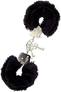 PartyDeco Metall Handschellen mit Pelz Schwarz mit Schlüssel Geschenk für 18. Geburtstag Party Bondage Handschellen Lustige Gadget Joke Erotische Handschellen