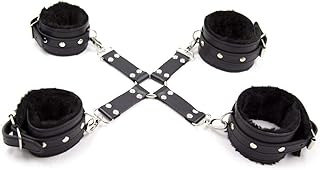 Frauen Leder Handschellen, verstellbare Plüsch PU Slave Handgelenk & Fußfesseln Handfesseln Sexy Spielzeug (Schwarz)