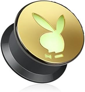 Plug aus Kunststoff mit Schraubverschluss Gold ausgeschnittener Playboy Bunny (leuchtet im Dunkeln) 6mm – 16mm PBP-03