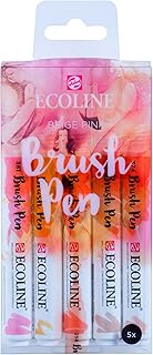 Ecoline Brush Pens Create beautiful fluid and vivid lines with Ecoline Brush Pens. The Brush Pen is characterized by its flexible tip and extensive range of brilliant colours thanks to its pure, dye-based formula. These pens are perfect for hand lettering, watercolour drawings, quick sketches and finishing touches. Royal Talens Talens Ecoline 5 brush pens''Pastel'', multicolour (T1150-9901) Brand: Royal Talens 155 ratings Save 18% Lowest price in 30 days About this item Set of 5 pastel colour pens:pastel violet, pastel green, pastel blue, pastel rose and cold grey light Liquid water colour paint Suitable to use on water colour, drawing paper and card