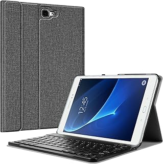 Fintie Tastatur Hülle für Samsung Galaxy Tab A 10,1 2016 T580N/ T585N Tablet - Ultradünn leicht Schutzhülle mit magnetisch Abnehmbarer Drahtloser Deutscher Bluetooth Tastatur, Jeansoptik dunkelgrau