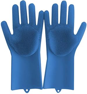 Caomoa Scheuerhandschuh, wiederverwendbar, Bürstenschrubber magische Wärme Reinigungshandschuhe Freie Größe Blau