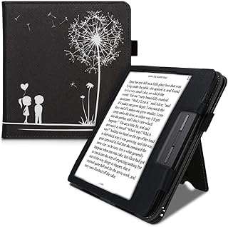 kwmobile Flip Cover kompatibel mit Tolino Vision 5 - Hülle mit Handschlaufe Pusteblume Love Weiß Schwarz