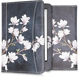 kwmobile Flip Hülle kompatibel mit Tolino Shine 3 - Vorderfach Handschlaufe - Magnolien Taupe Weiß Dunkelgrau