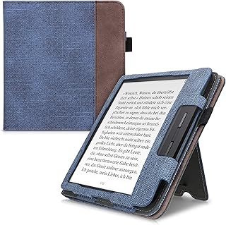 kwmobile Flip Hülle kompatibel mit Tolino Vision 5 - Handschlaufe - Cover Jeansblau Dunkelbraun