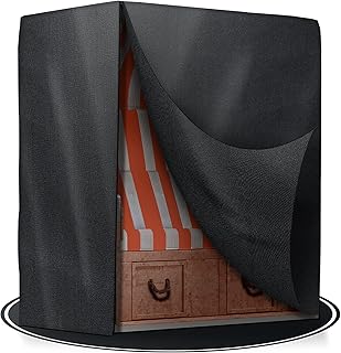 Strandkorb Schutzhülle Abdeckung für Strandkorb ,Schwerlast 420D Oxford Gewebe Wasserdicht und Winterfest UV-Beständiges Strandkorbhülle 135x105x175/140cm(Schwarz)