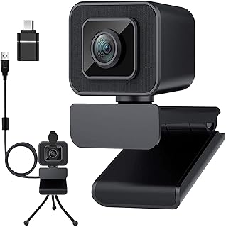 Adhope HD 1080P Webcam mit Mikrofon,Streaming Webcam für PC/Desktop, USB Plug & Play Webkamera für Video Chat, Konferenz, Kompatibel mit Windows/Linux/Mac OS/Android (mit Abdeckung&Stativ)