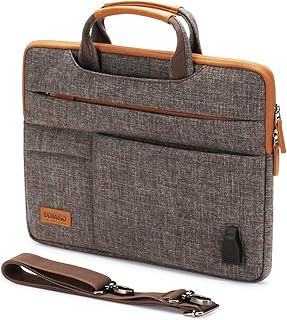 DOMISO 13-13,3 Zoll Wasserdicht Laptop Tasche Aktentasche Tragetasche Schultertasche mit USB Ladeanschluss für 13.3" Dell XPS 13 Inspiron 13 / Acer Swift 1 / Apple/Lenovo/HP/ASUS, Braun