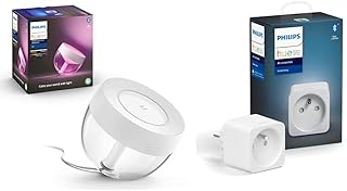 Philips Hue White & Col. Amb. LED-Tischleuchte Iris, weiß, dimmbar, 16 Mio. Farben, Deep Dimming-Funktion & Smart Plug, smarte Steckdose, kompatibel mit Amazon Alexa (Echo, Echo Dot)