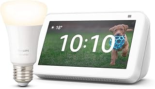 Echo Show 5 (2. Generation, 2021), Weiß + Philips Hue White-Lampe (E27), Funktionert mit Alexa - Smart Home-Einsteigerpaket